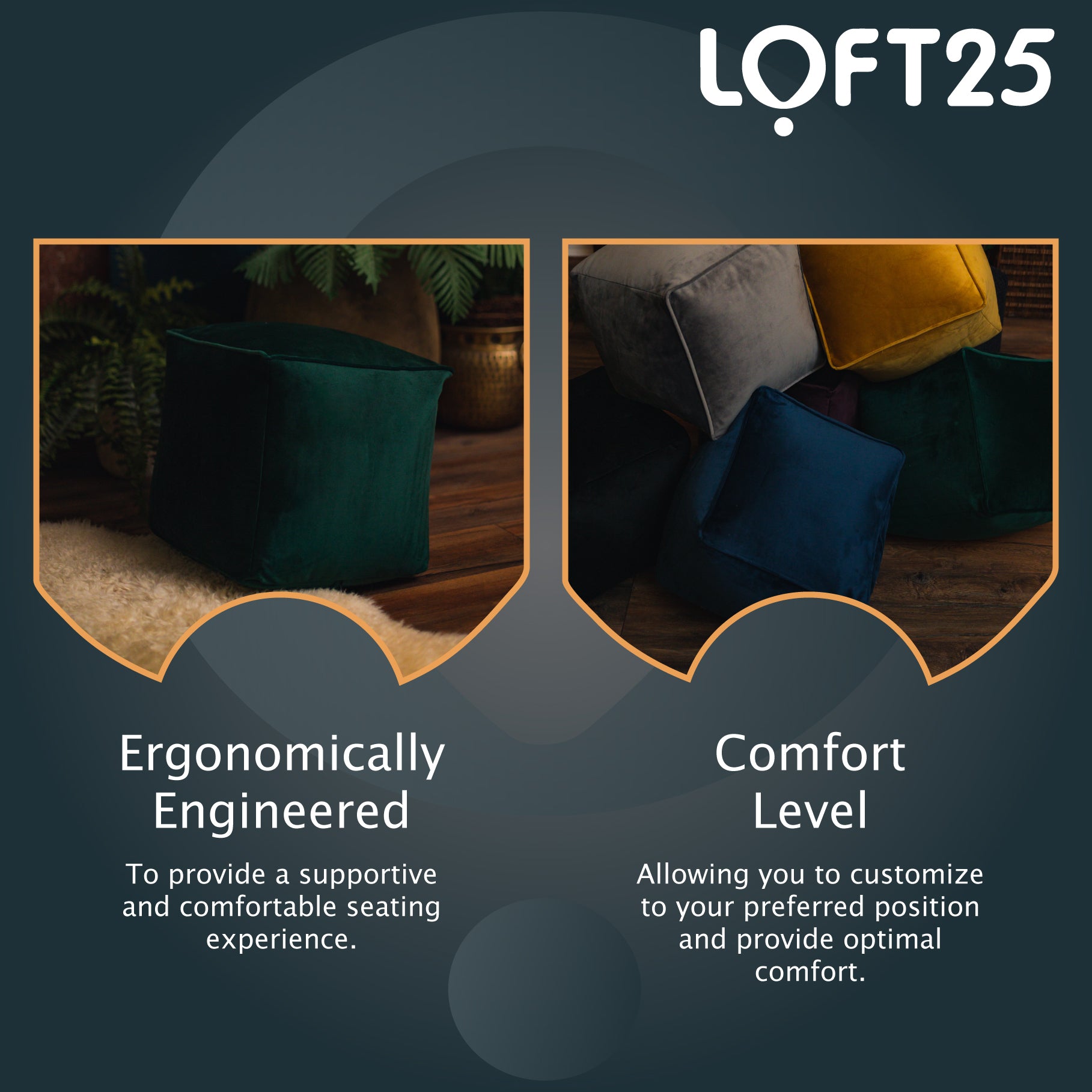 Loft 25 Premium Cubed Velvet Bean Bag Footstool